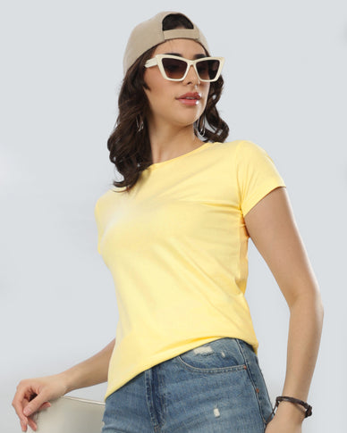Elevate your wardrobe with our Women's Regular T-Shirt in vibrant Lemon Yellow. This essential piece combines style and comfort with its premium cotton construction and flattering regular fit.